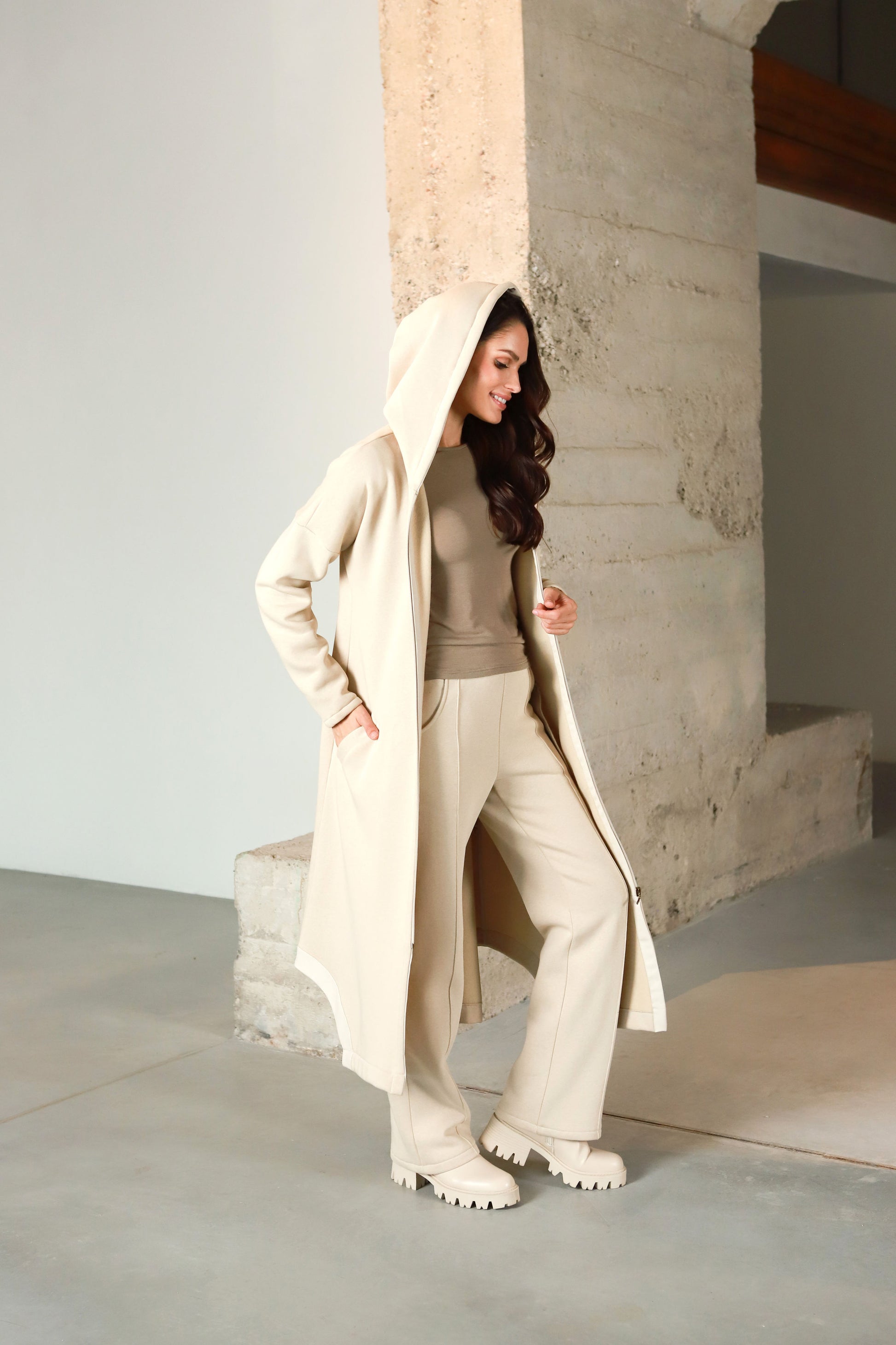 Lega pikk kardigan seest pehme voodriga "Aurelia Beige"