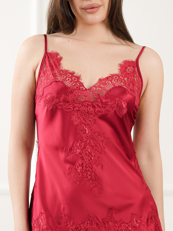 Komilfo шелковая ночная рубашка с кружевом "Ruby Bordeaux"